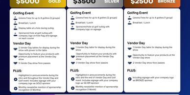 Gain premium placement at the Vendor Day, host up to 8 guests at the golf tournament, and enjoy extensive recognition.